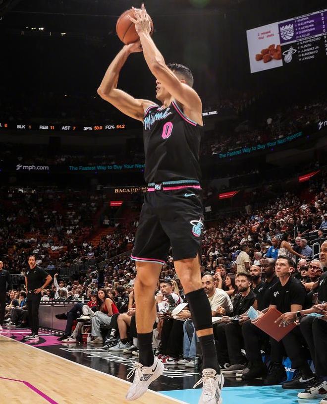 重新回到赛场之后,热火明显加强了对拉文的防守,根本不敢给他轻松出手的空间,但并没有起到太大的效果,在受到严防死守的情况下,拉文全场比赛还是靠着13投8中的三分球,狂砍全场最高的42分,此外还有6个篮板、1次助攻和1次抢断的数据进账。