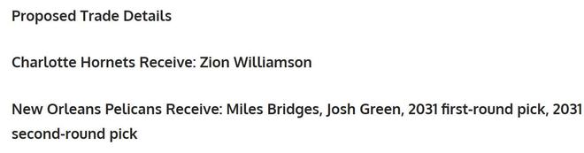 鹈鹕得到:布里奇斯+约什格林+31年首轮+31年二轮。