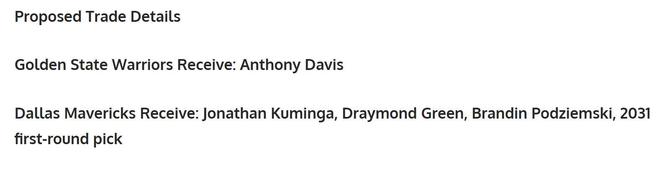 交易方案二:勇士4换1浓眉哥